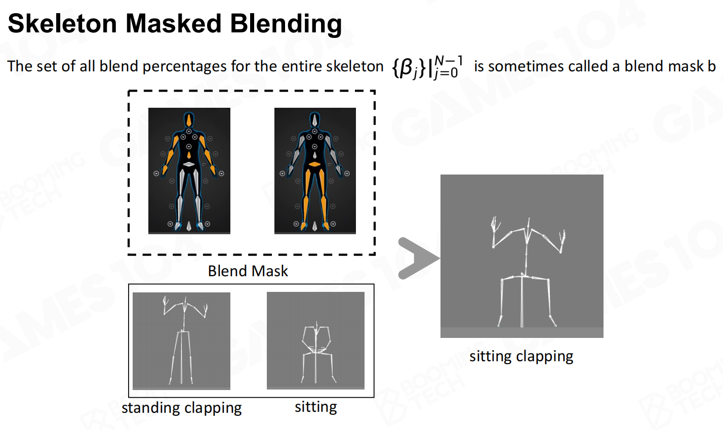 Masked Blending就是对骨骼进行遮罩的一种技术,这样就可以将多个动画进行组合。