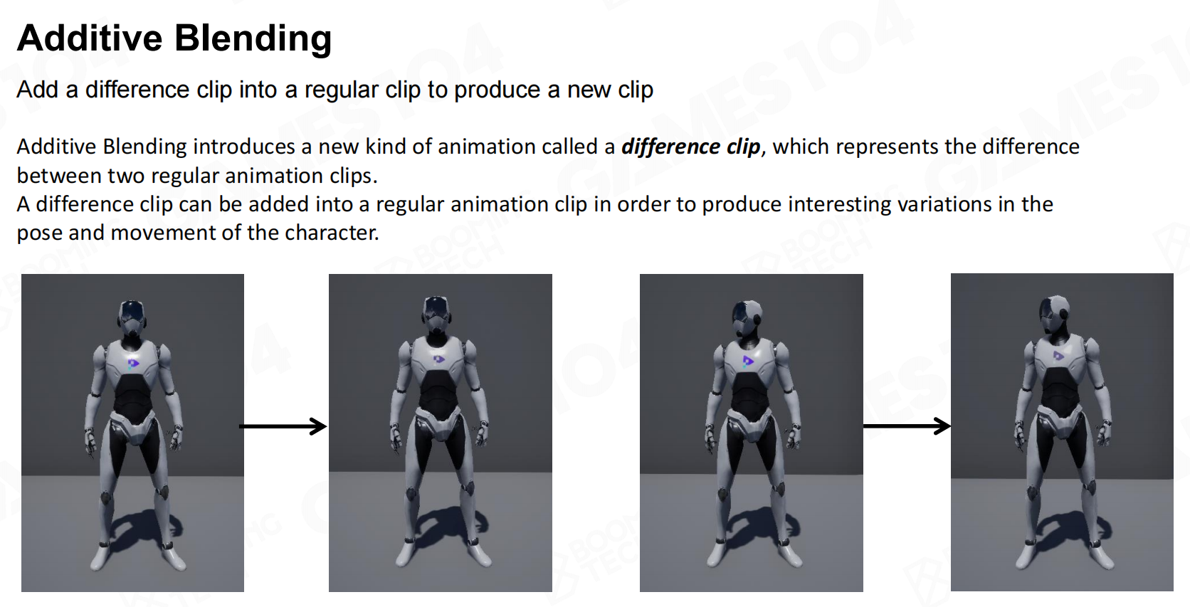 所以不同于其他动画blending,一般业内使用Morph Target Animation。简单讲就是blending总是以additive的形式去融合,