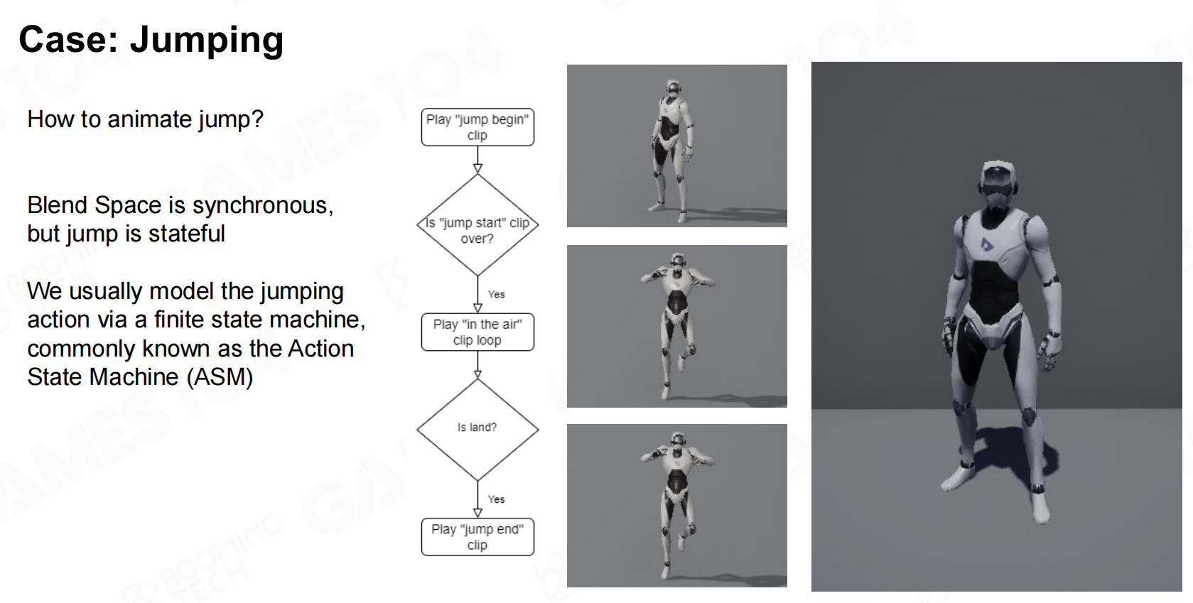 比如“跳”这个动作我们一般分为“起跳”、“滞空loop”以及”落地”三个部分,而且其存在明确的顺序关系。