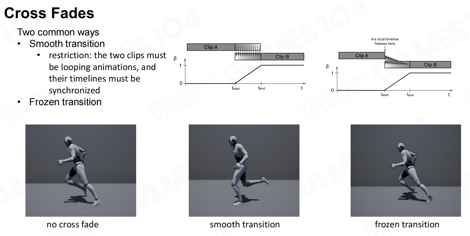 ASM内部的动画切换也有两种方式:smooth transition和frozen transition。smooth transition平滑得将两个动画随时间插值,