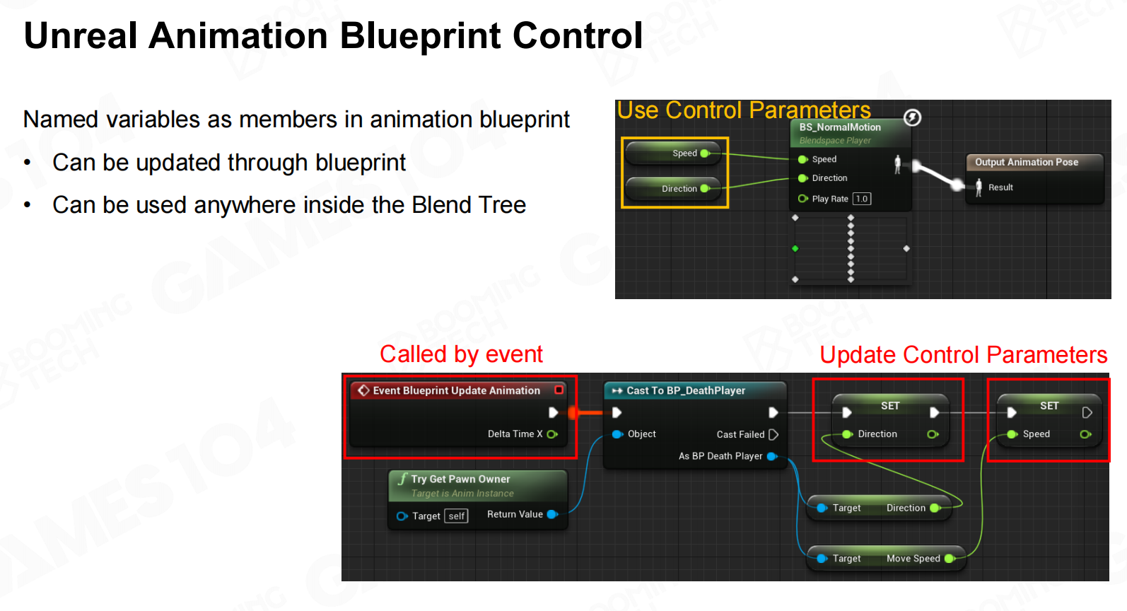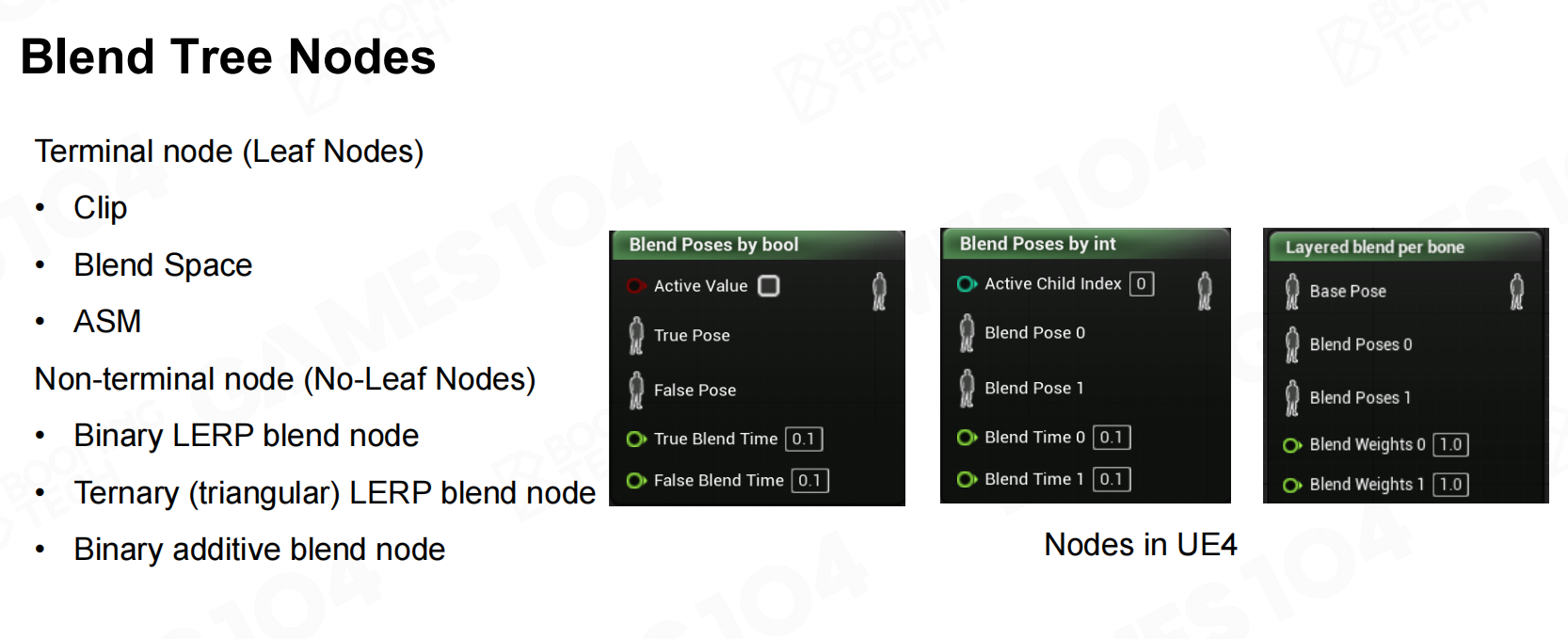 另外,动画树的核心作用是控制变量,动画树会定义大量变量暴露给外面的game play系统来进行控制,而这些变量的值决定了动画的混合行为。