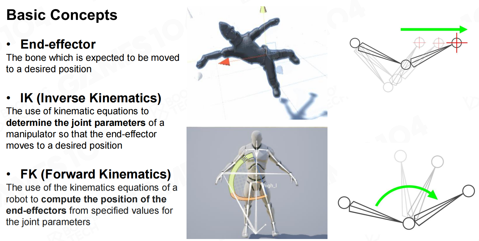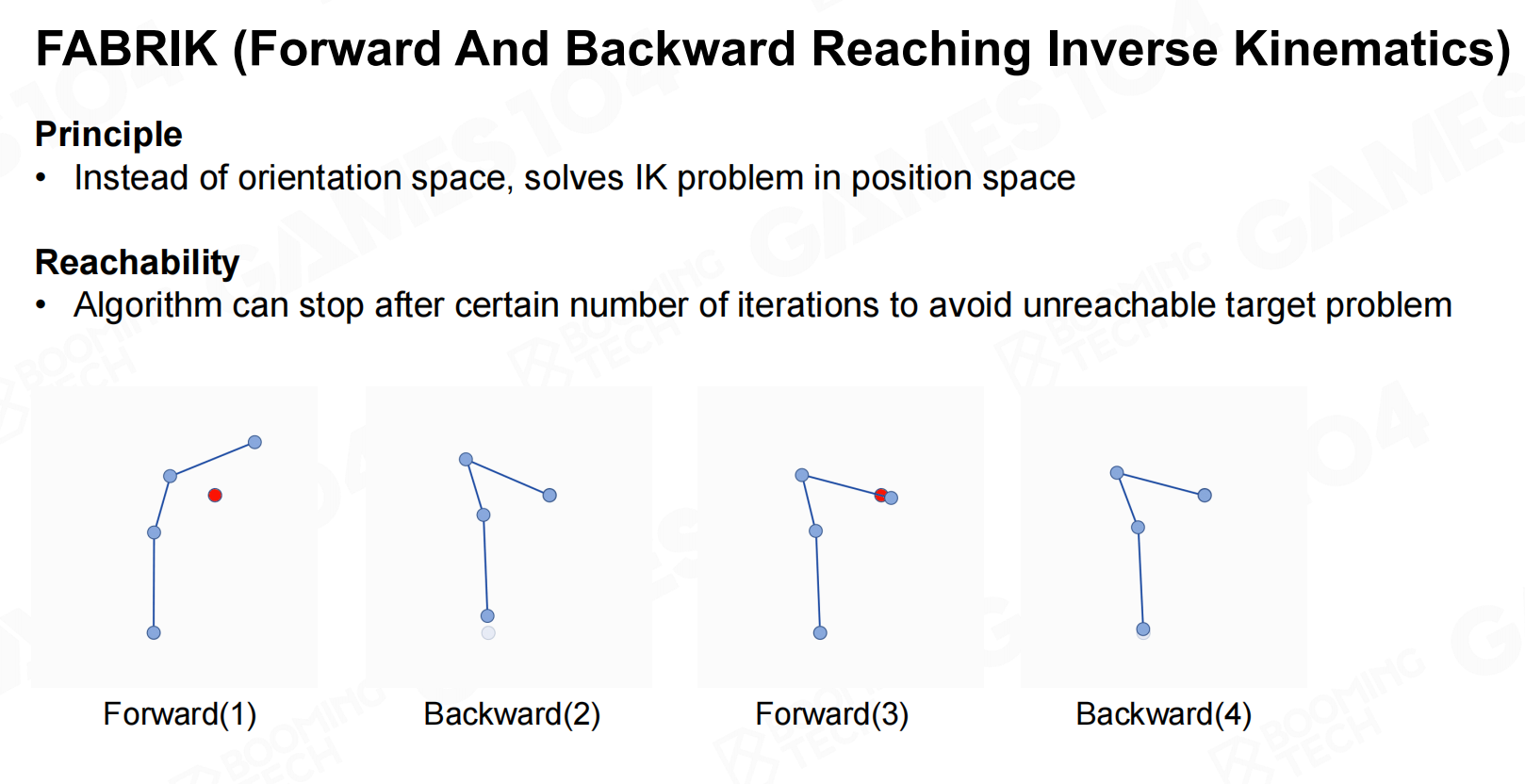逐步正向计算每个节点位置,以符合最终的效果。其中IK在游戏中使用较为常见
