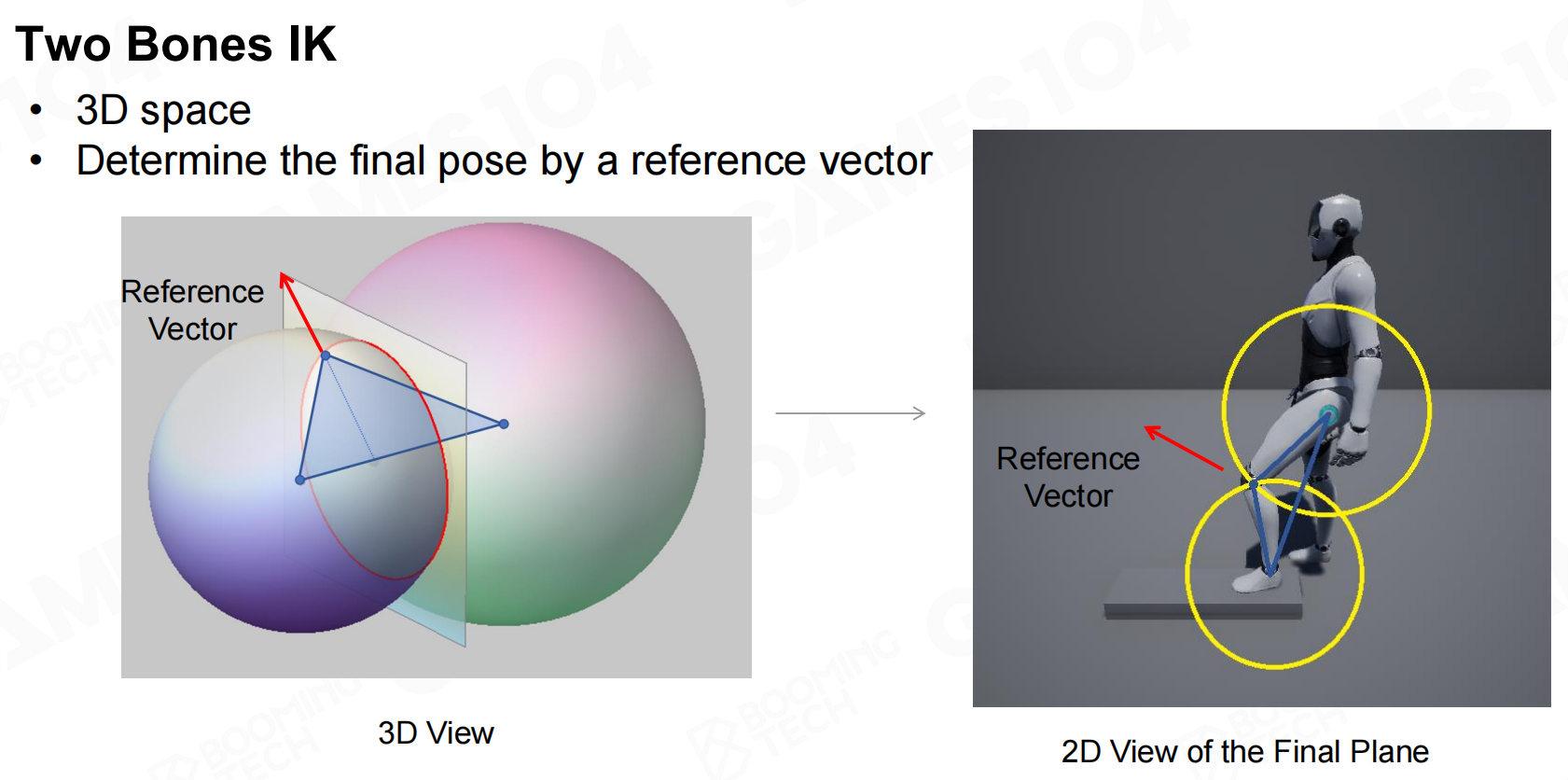Two Bones IK是指只有两个骨骼限制的IK,常见于人物行走在地面的效果。两个骨骼是指与地面接触的点以及大腿根部,这样就可以简单计算腿的弯曲角度。