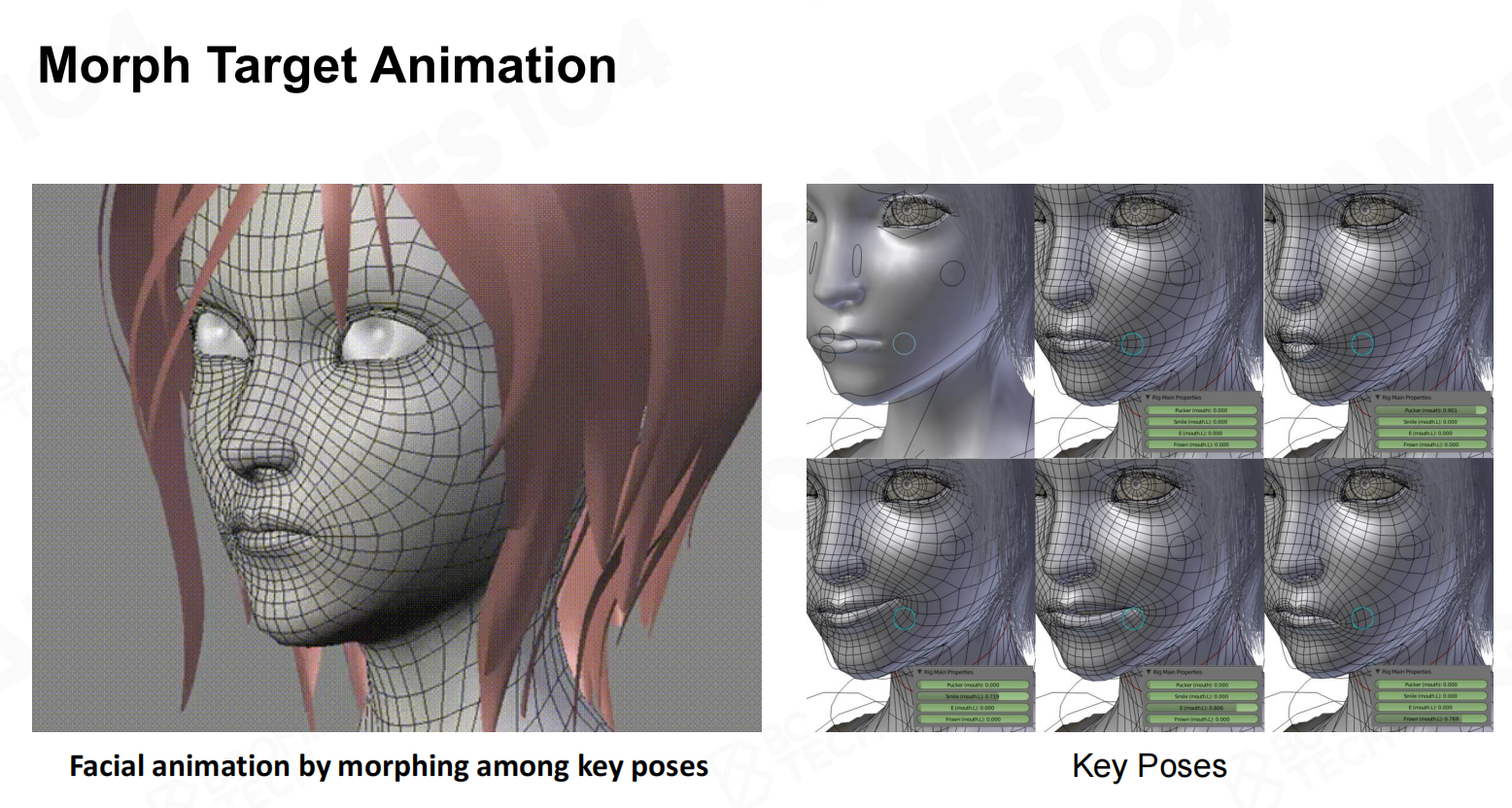骨骼动画虽然也可以处理面部表情,但即便是最简单的表情也需要花费大量的时间处理。