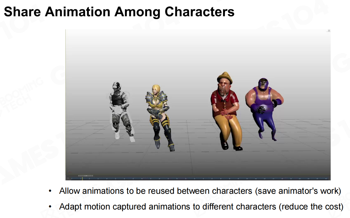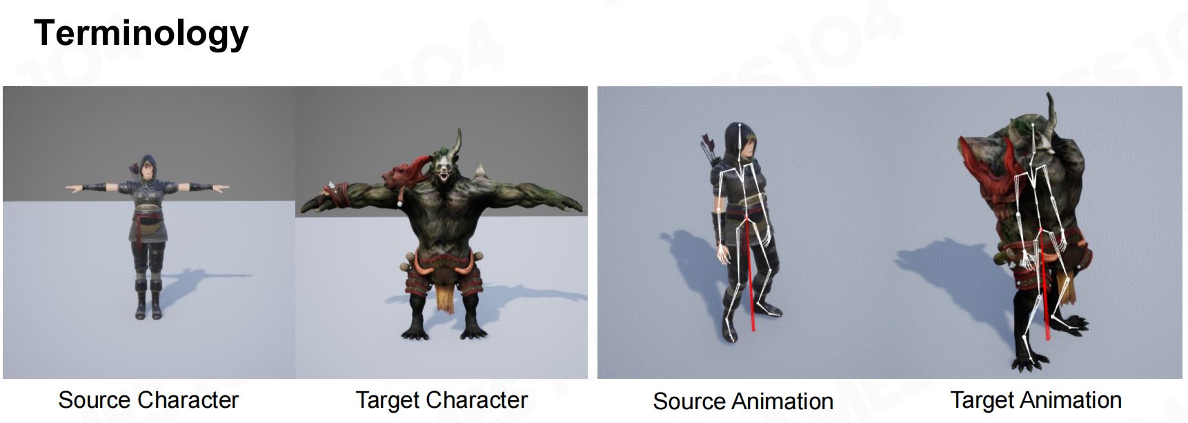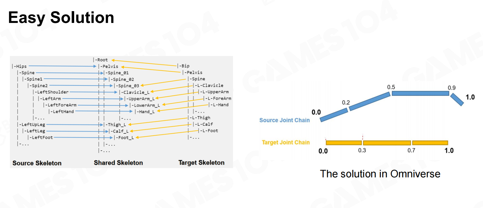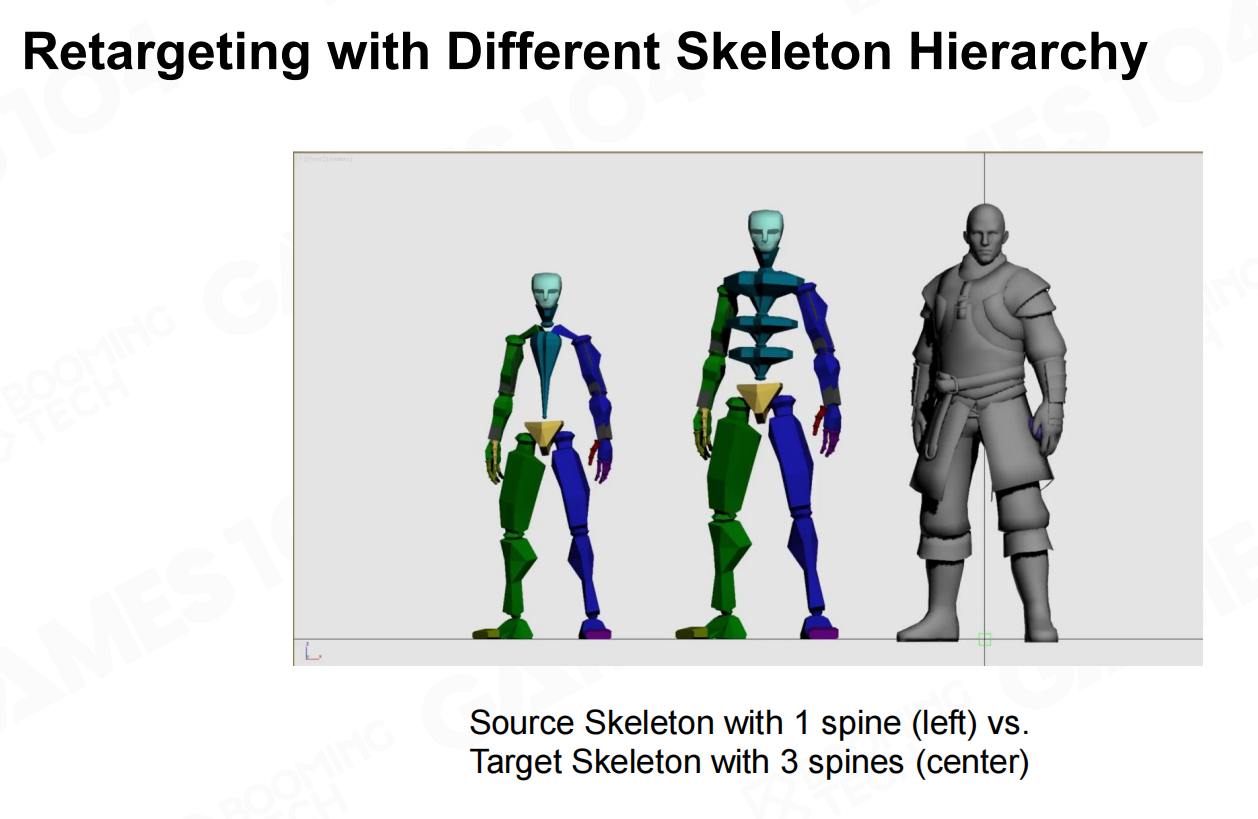 处理的方式有很多,一种较为简单的方法是规定骨骼名称相同的进行Retargeting处理。将中间没有Retargeting的骨骼归一化.