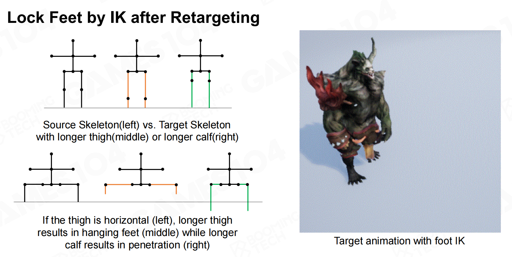 由于大腿与小腿的比例差异,上述方法就会产生穿模,这时就需要使用IK来辅助解决。