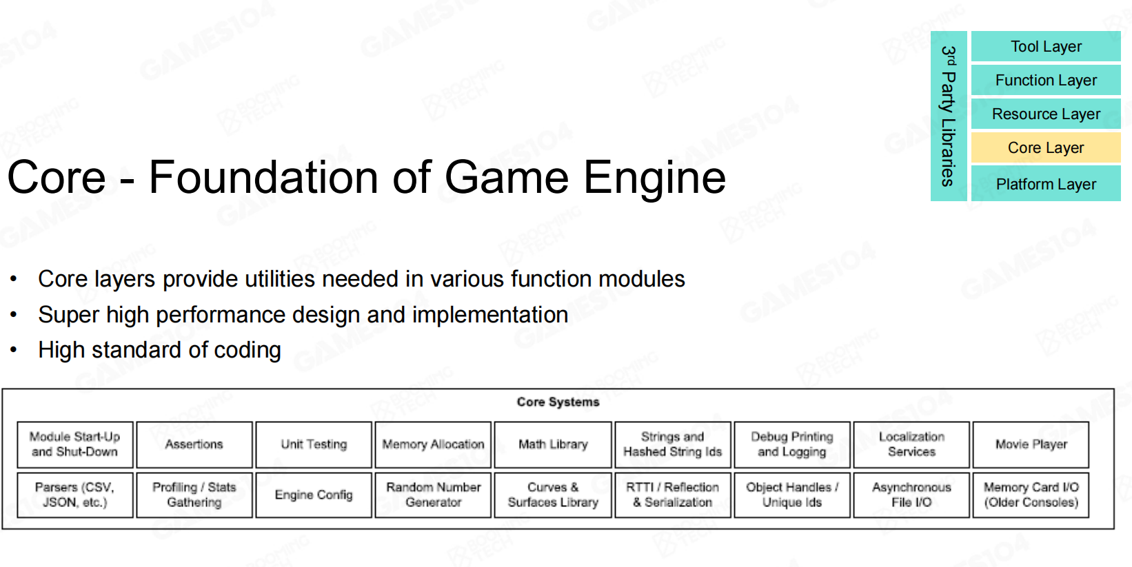 - 核心层:提供各种核心服务,比如动画、物理、渲染、脚本、相机