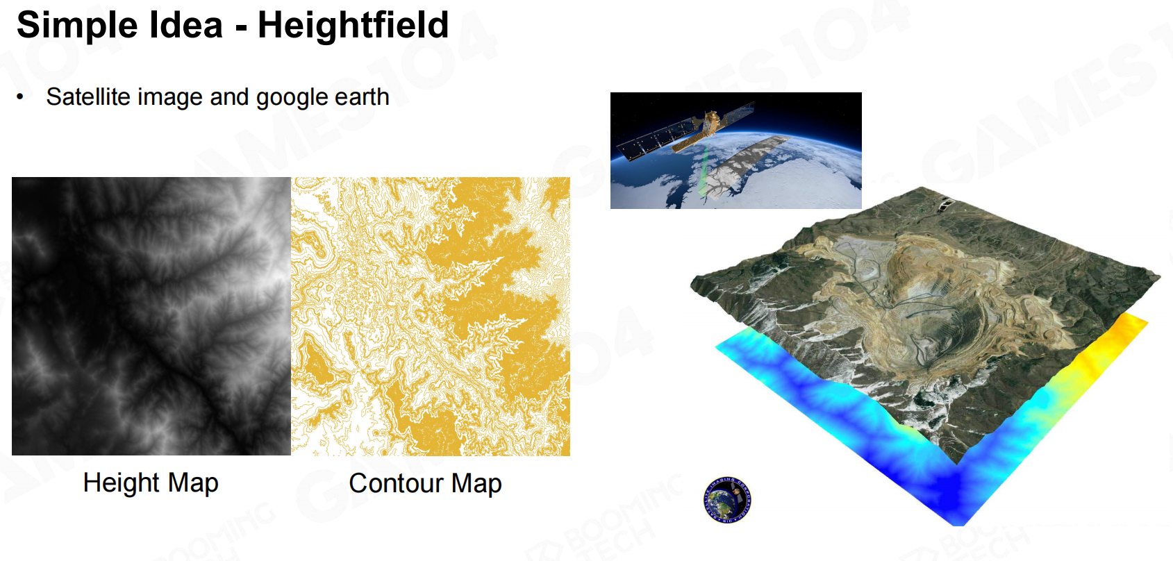 Heightfield是地形的俯视图,记录了地形的高度数据。原始的地形Mesh可以是精度较低的网格,