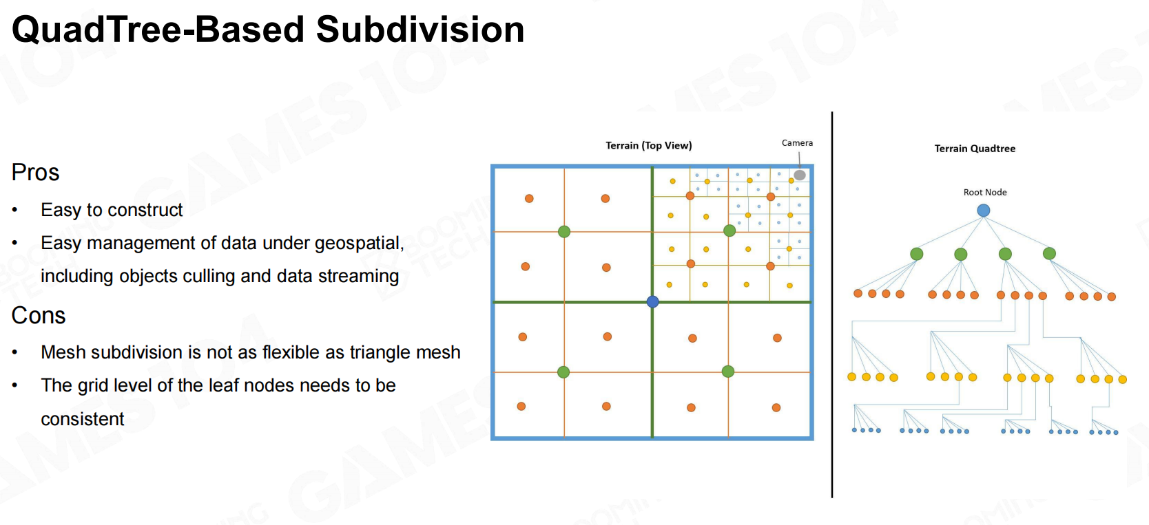 QuadTree不仅在算法层面较为便利,并且资源的制作和管理方式也与算法较为贴合。四叉树同样存在T-Junctions问题,