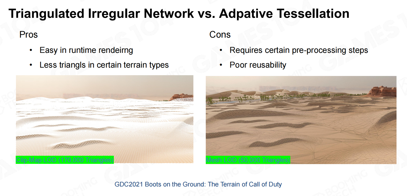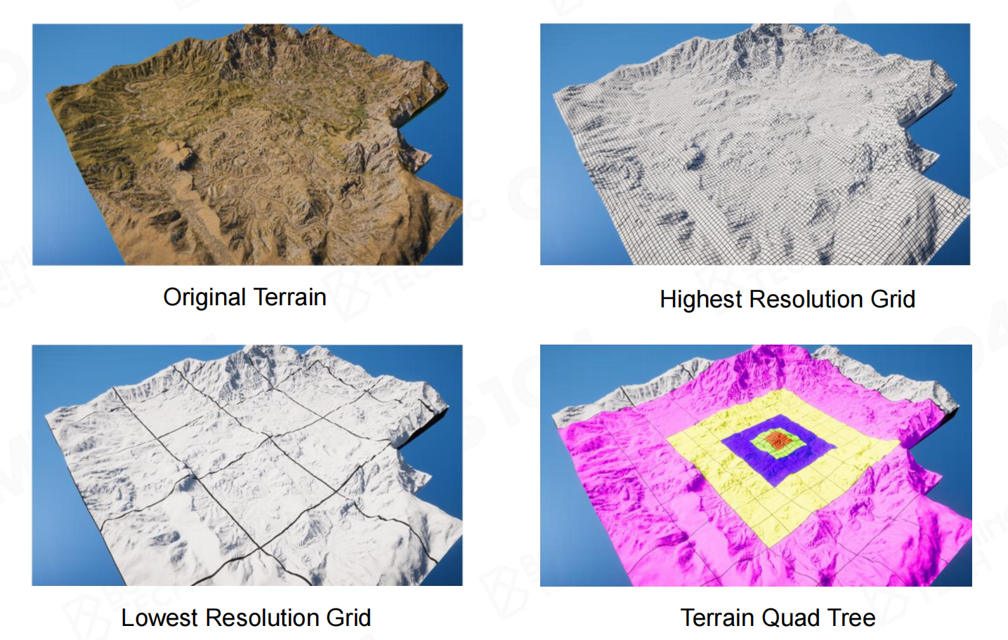 因此TIN将地形的细分直接做到Mesh中,不再动态计算。