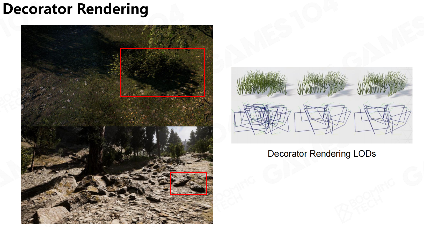 通常渲染树的方式是用一堆插片来表示,并且根据视角做LOD。