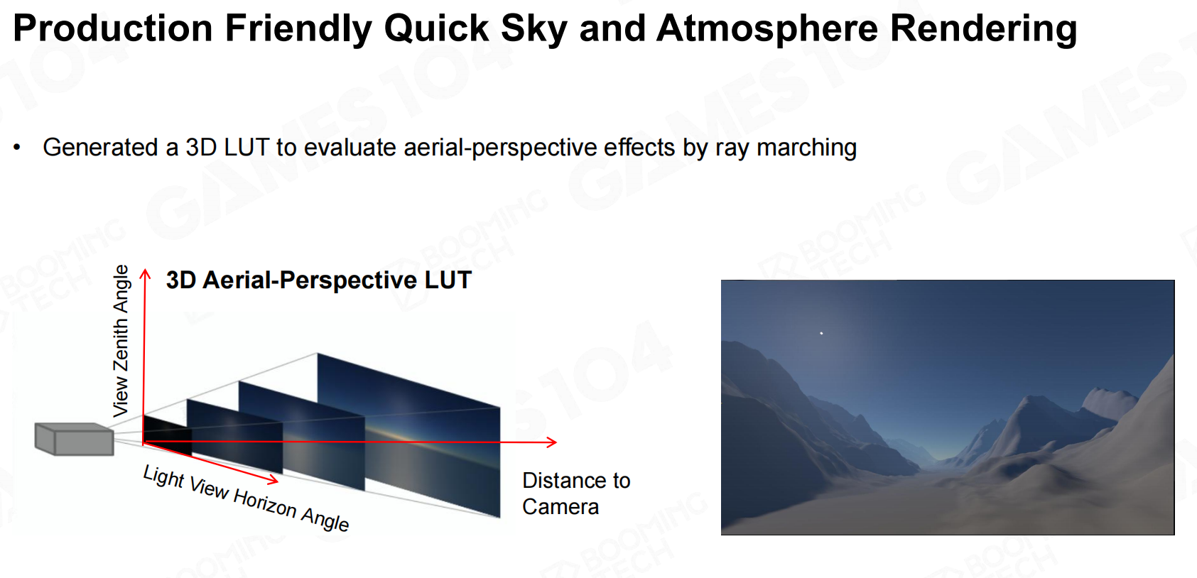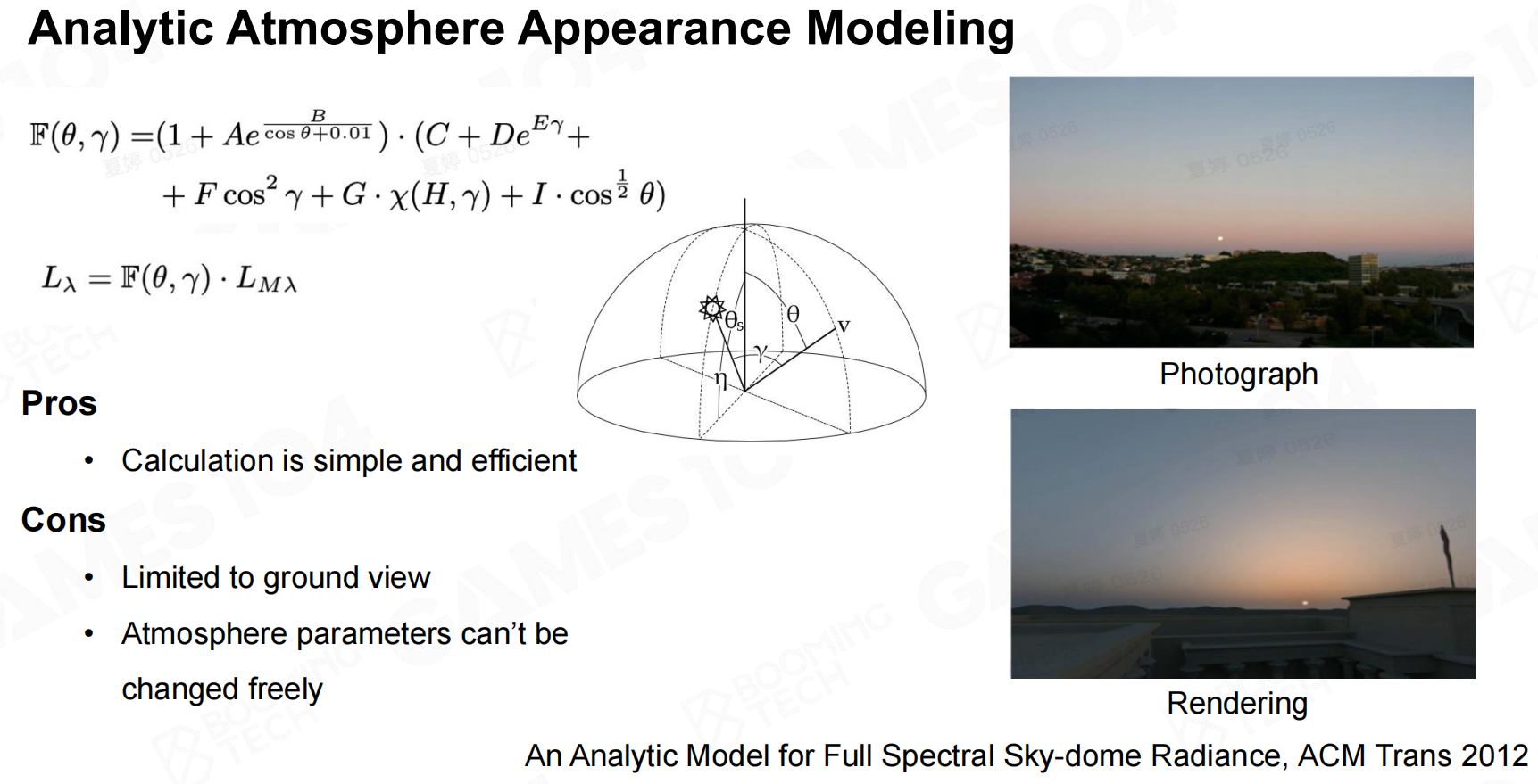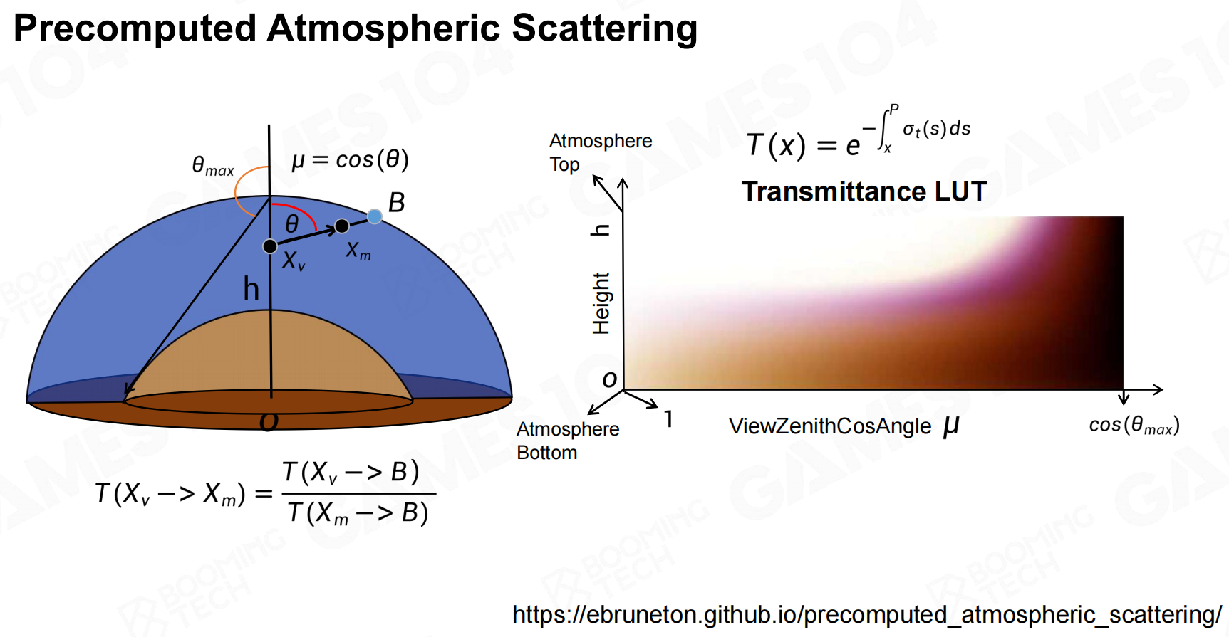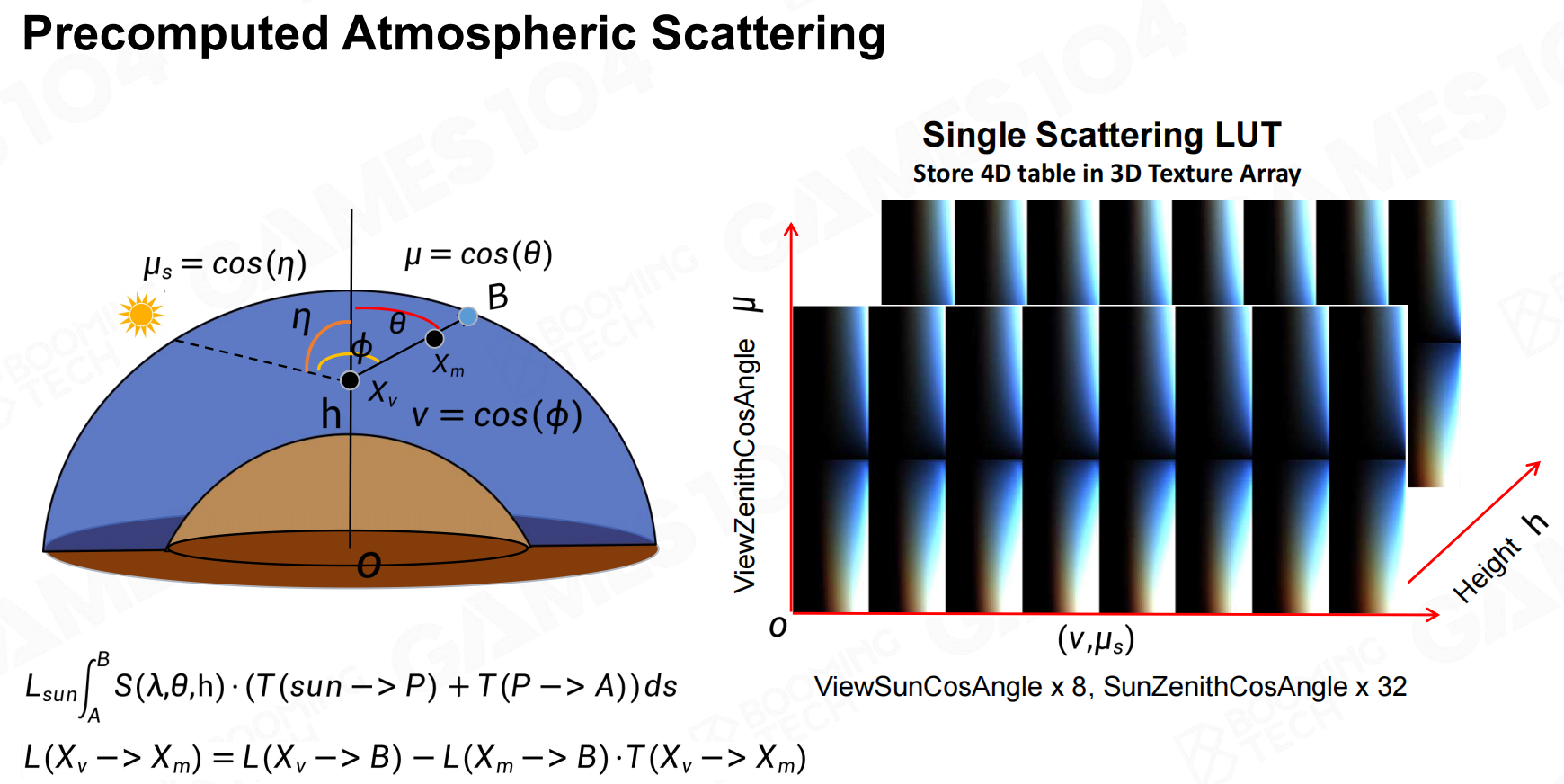 - 光源位置不变,海拔高度不变,这样只需要两个参数就可以查找散射
