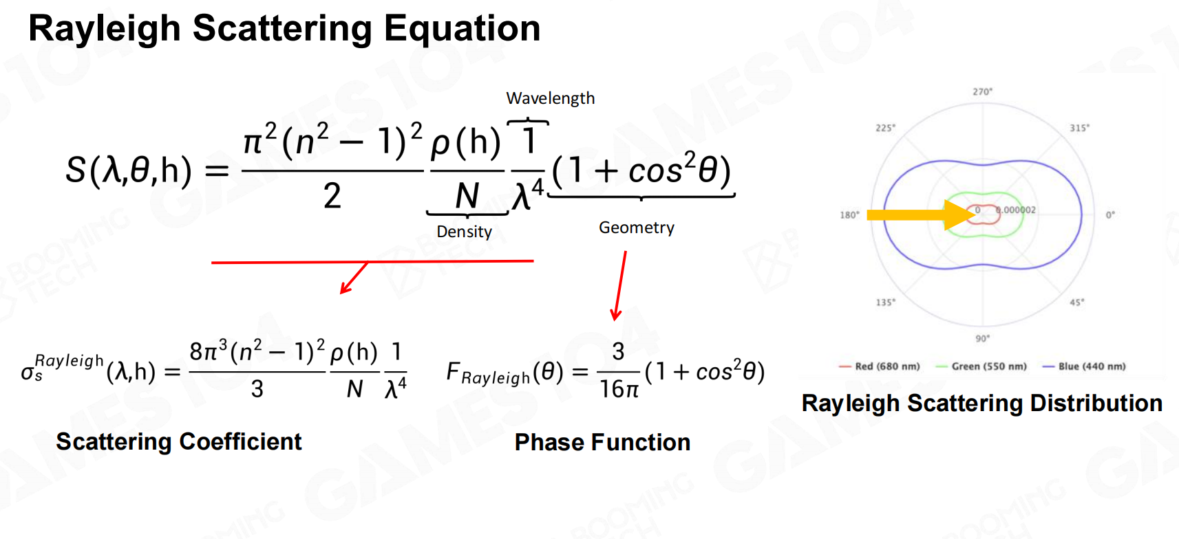 - 大气的散射具有各项同性 => 颜色百分比的衰减