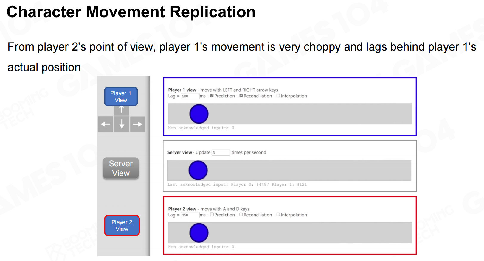 角色位移同步(character movement replication)是现代大型网络游戏必须要实现的功能。由于网络环境的不稳定,玩家操作角色在自己视角和其他玩家视角下的行为往往会有一定的延迟,即角色在其他玩家视角下的动作会滞后于操作玩家的第一视角。