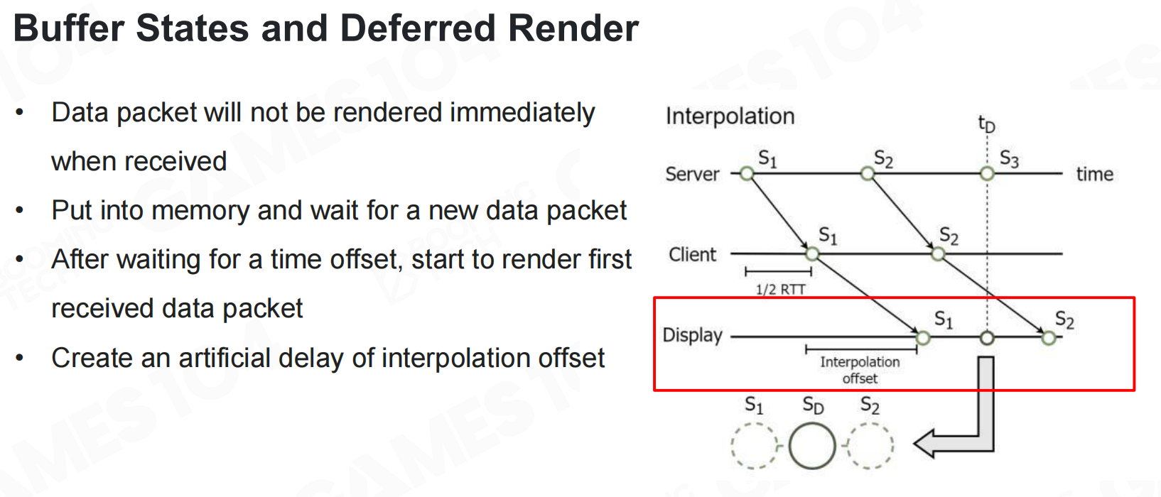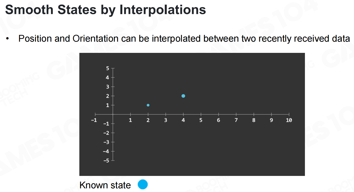 内插是指利用已知的控制点来获得中间的状态。当网络存在波动时利用内插的方法可以保证角色的动作仍然是足够平滑的。