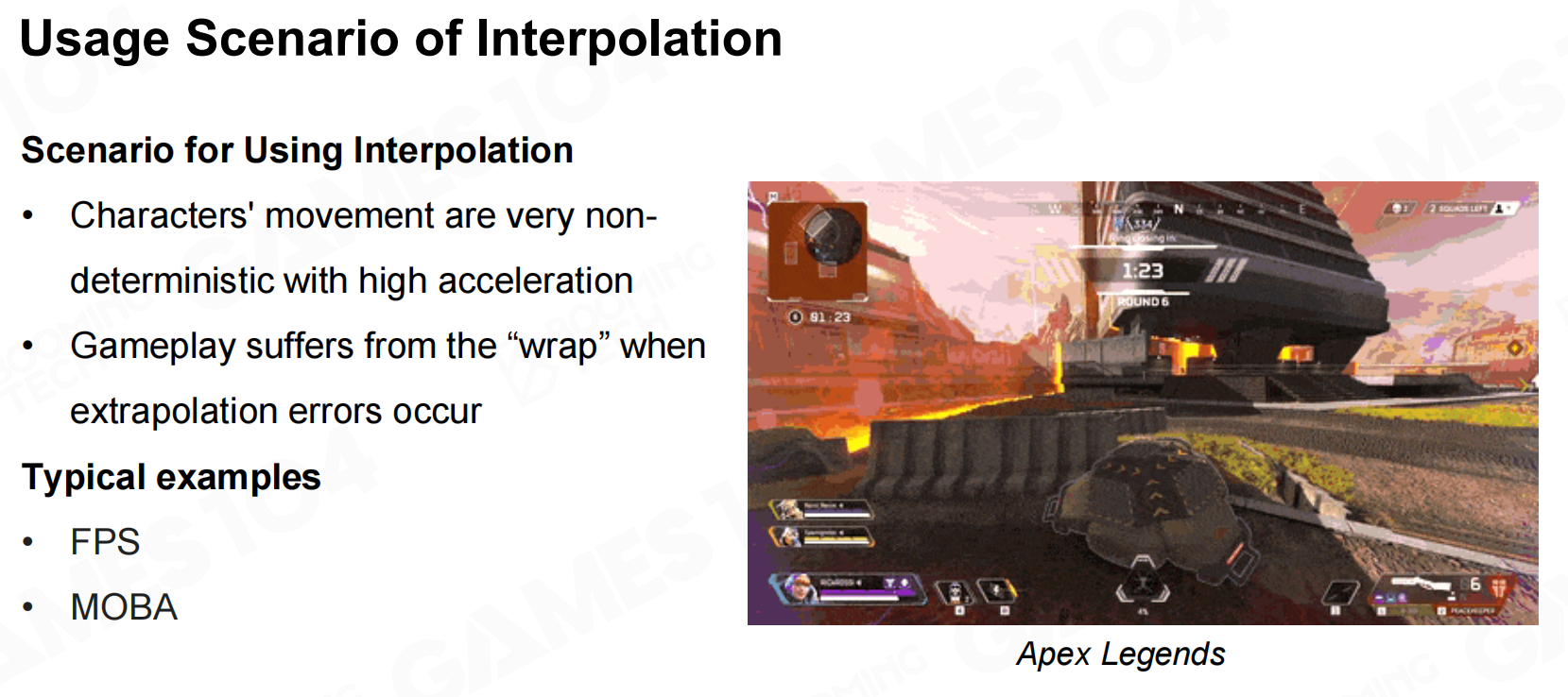 当然内插也存在一些问题。由于内插加剧了网络延迟的问题,同样的游戏世界在操作者和其他玩家的视角下会有非常大的差别。这样的问题在一些延迟要求很高的游戏中可能是不可接受的。