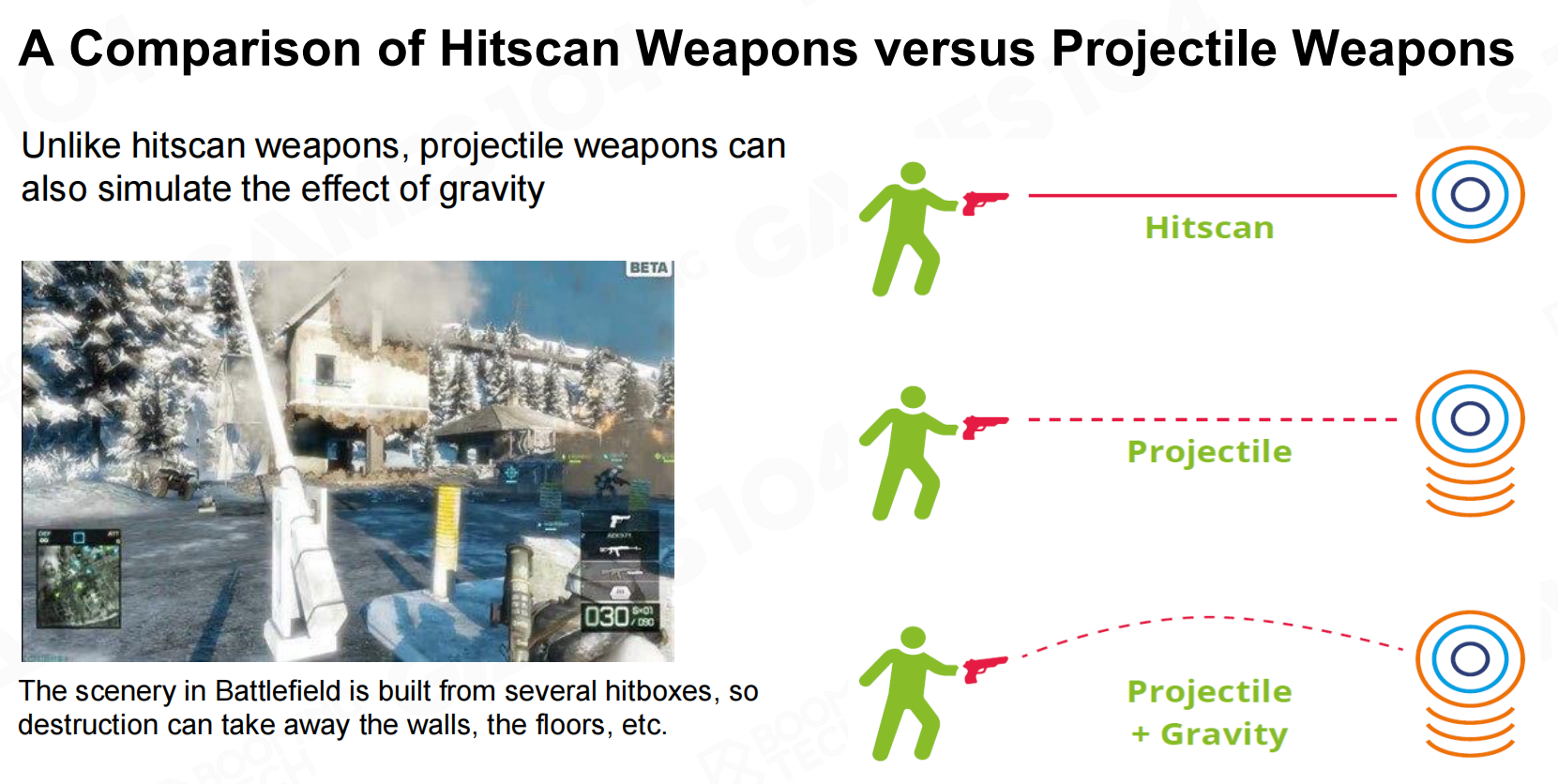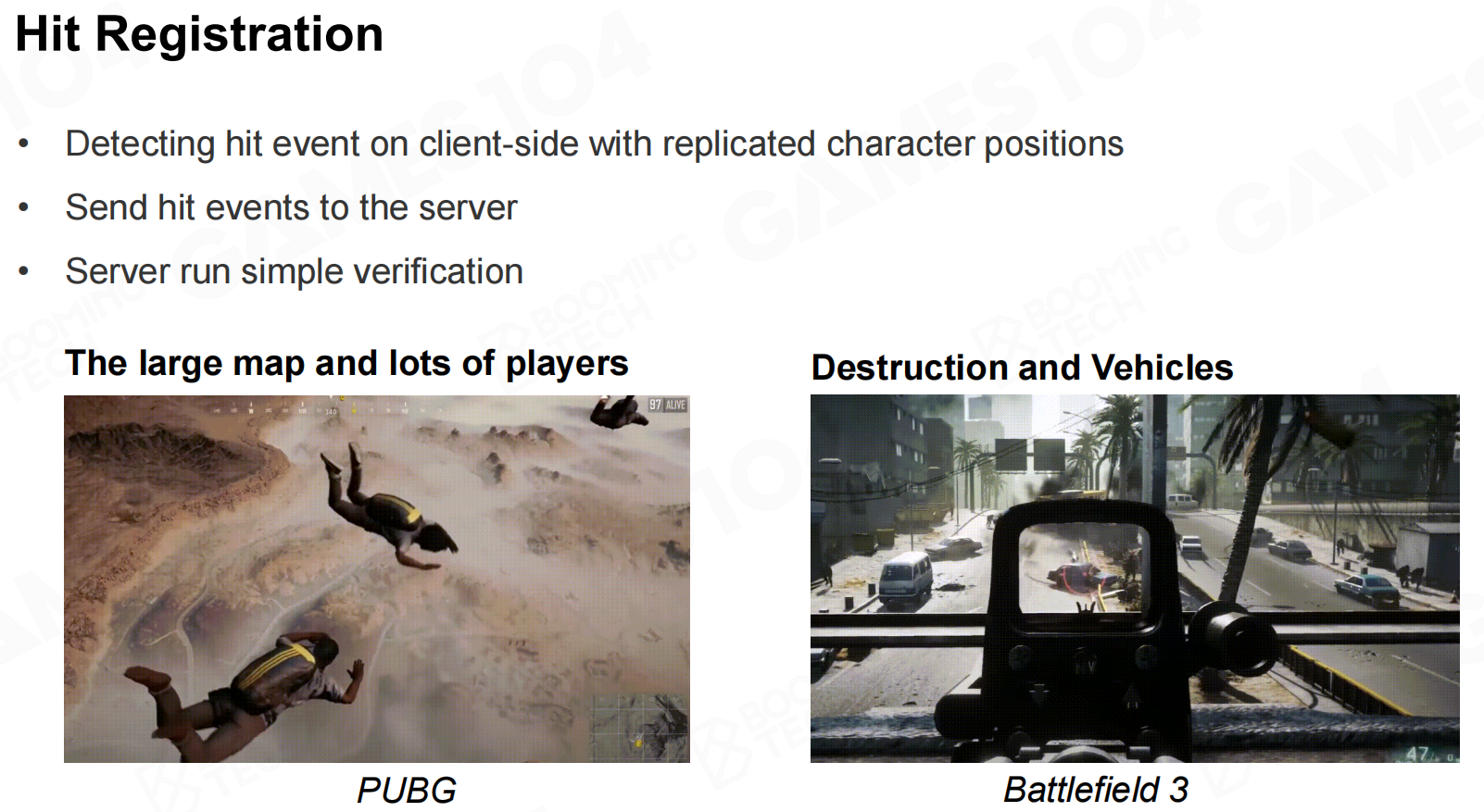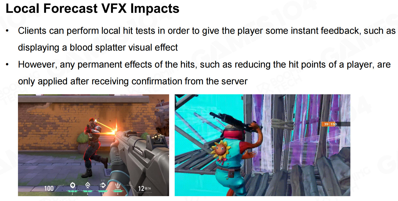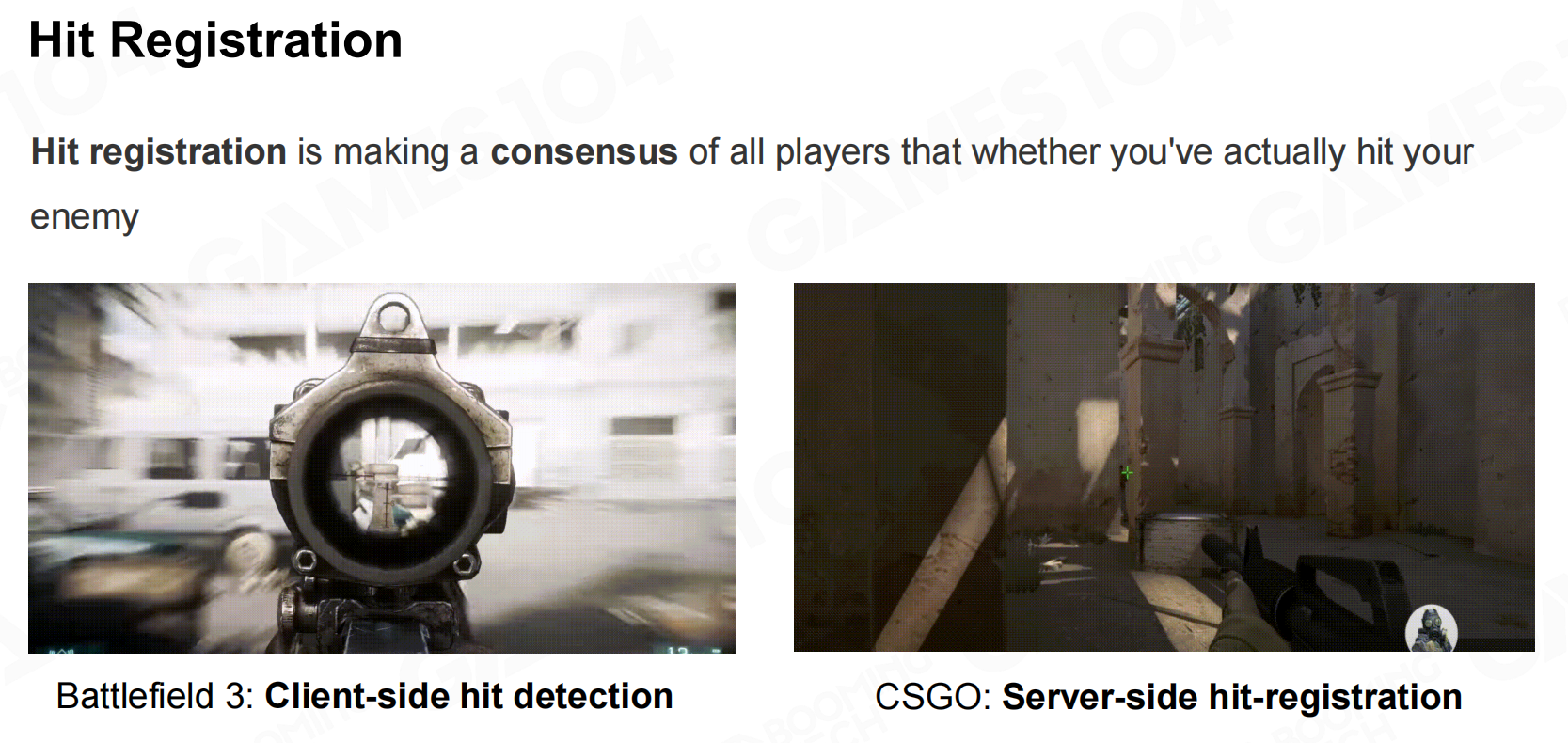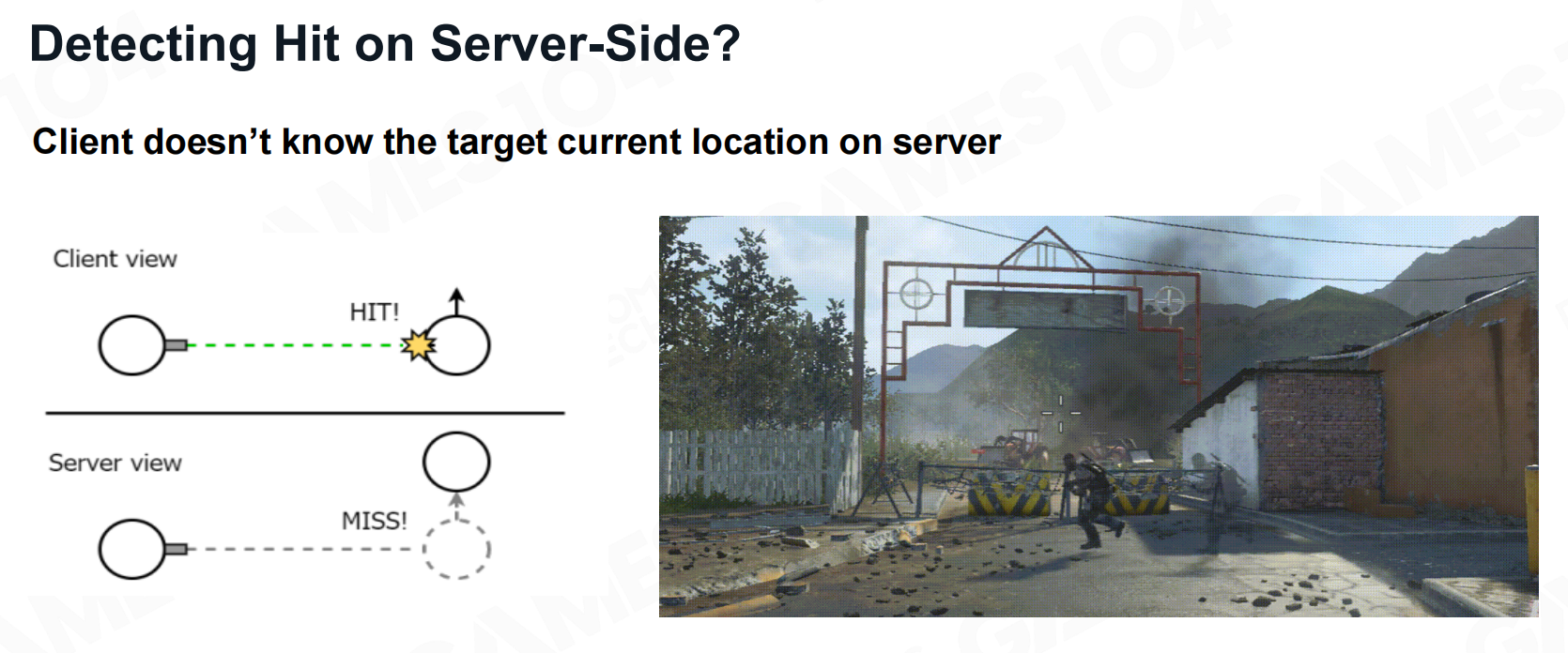 命中判定(hit registration)同样是现代网络游戏必须要提供的基本服务。以FPS游戏为例,从玩家开枪到击中敌人这一过程实际上有着非常大的一段延迟,在各种不确定因素的影响下如何判断玩家确实击中目标就需要一些专门的设计。