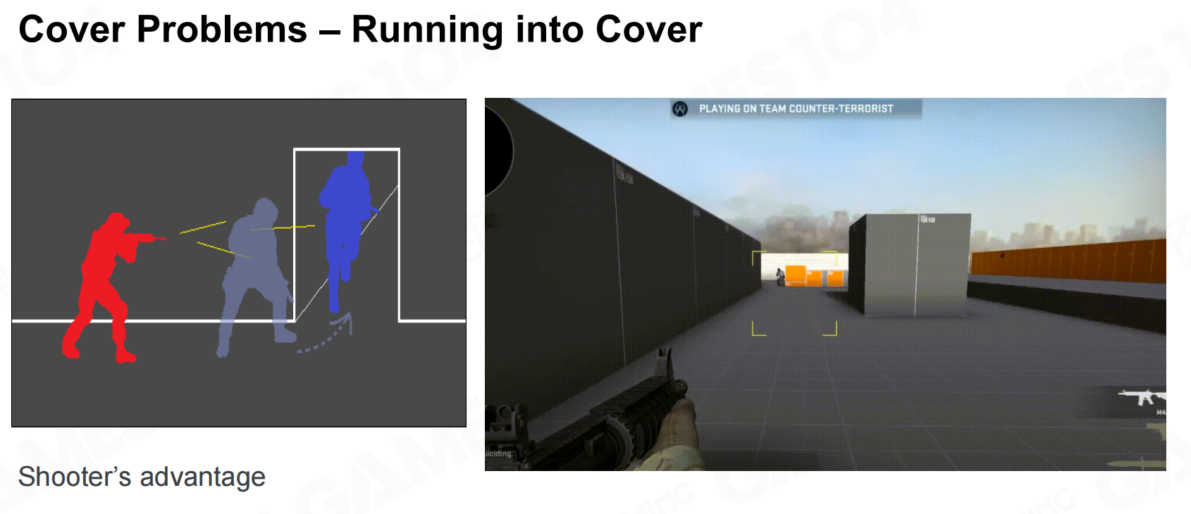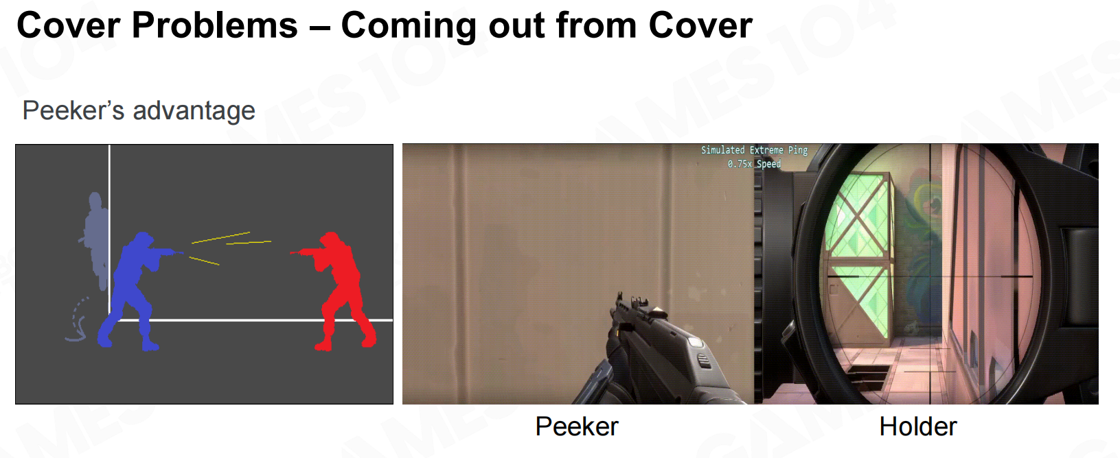 对于掩体的问题,由于网络延迟的存在可能会出现射击者优势或窥视者优势的情况。