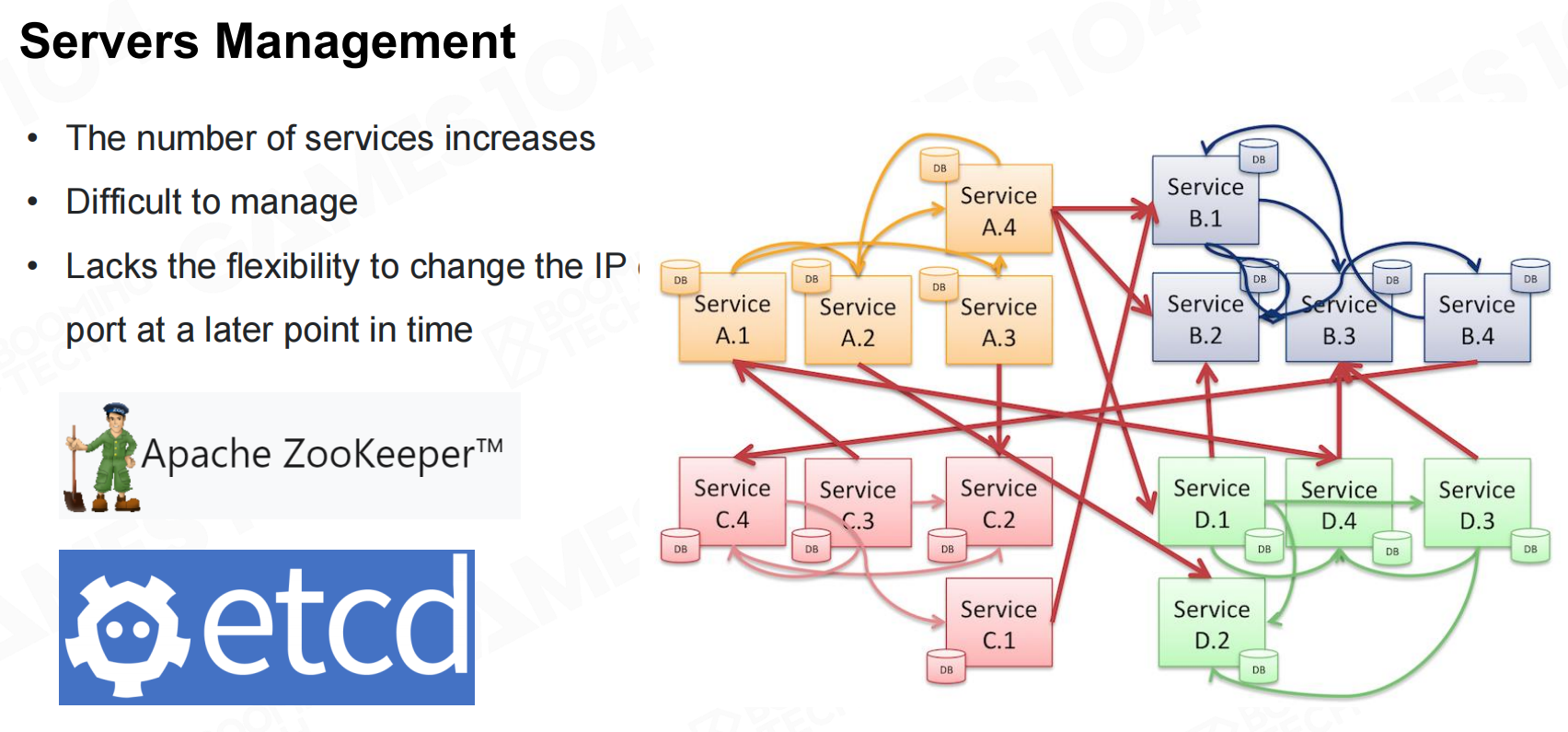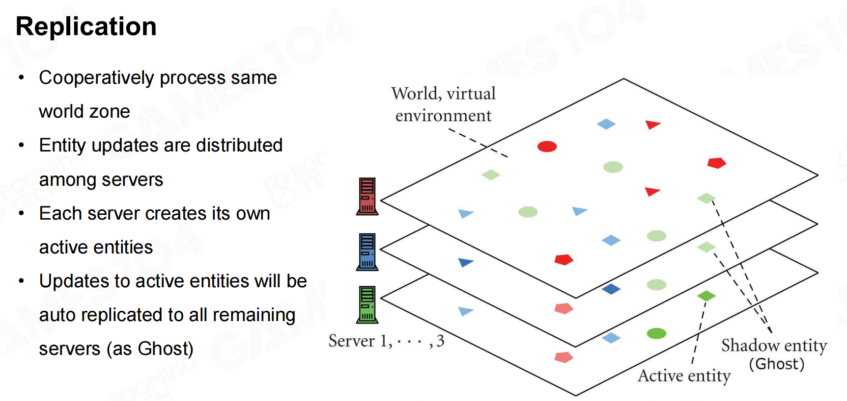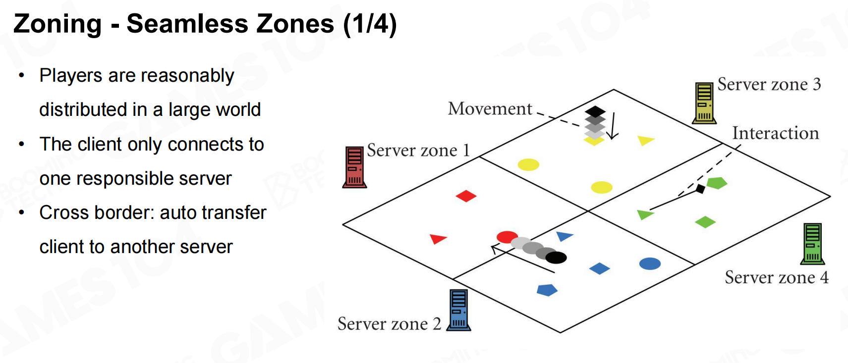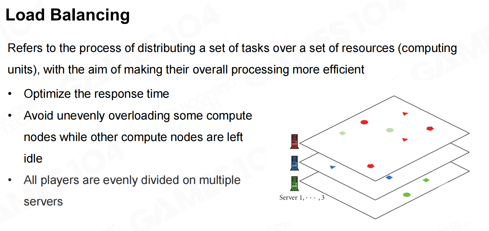 随着玩家数量的增长,在单个服务器上支撑所有玩家进行游玩是几乎不可能的。在这种情况下就需要使用分布式系统(distributed system)来提供游戏服务。