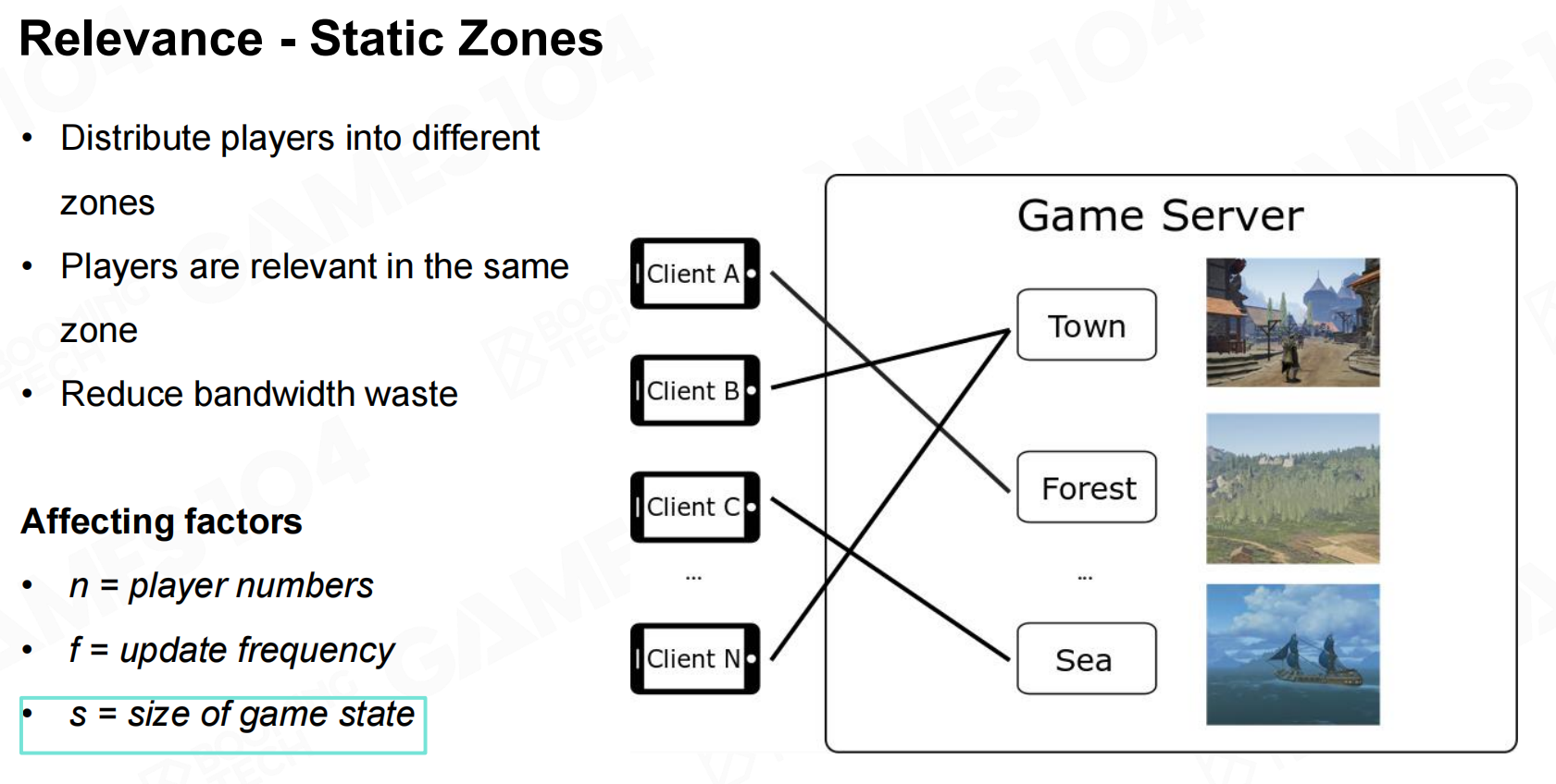 另一种缓解带宽需求的方式是只同步和玩家相关的对象,这样可以极大地减少每次和玩家同步的数据量。