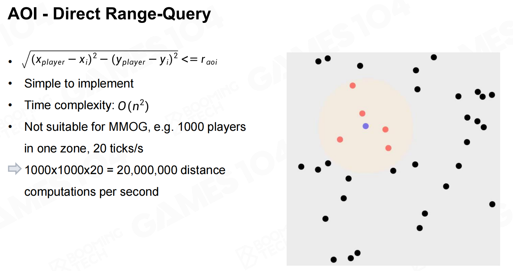 AOI最简单的实现方法是利用一个半径来查询附近信息。