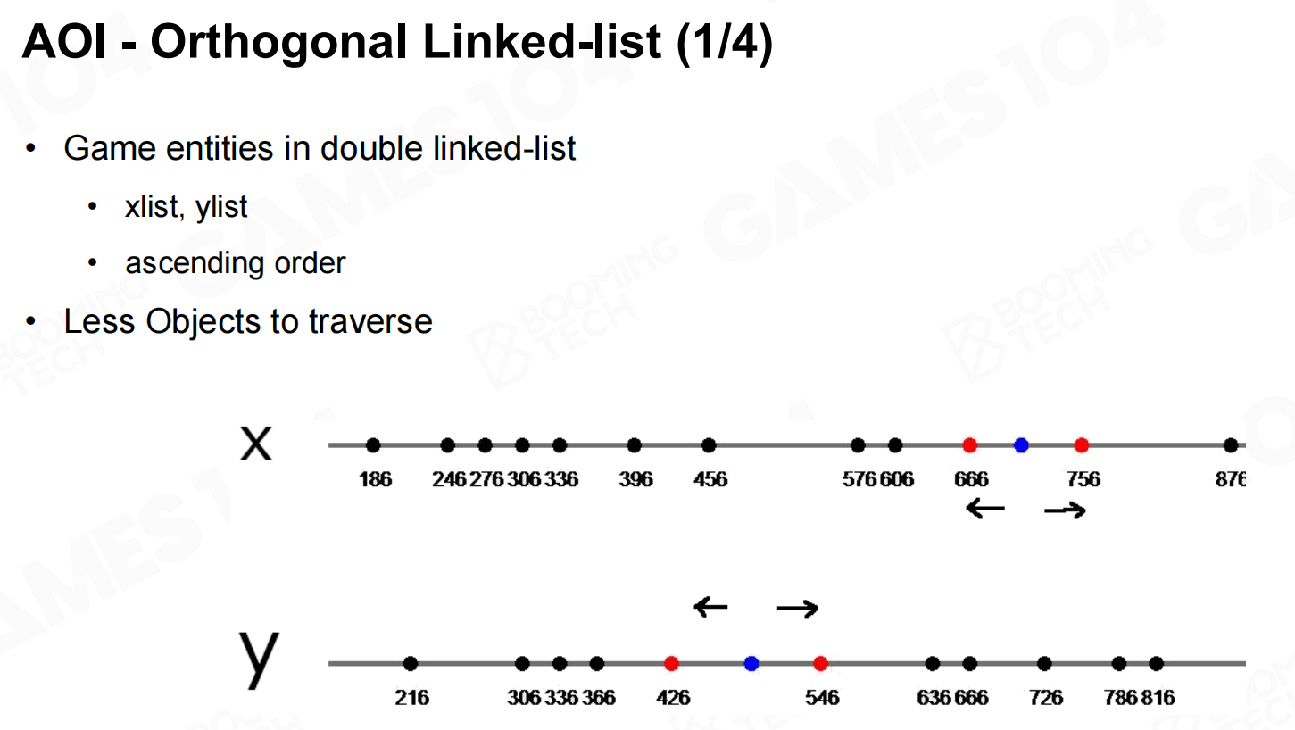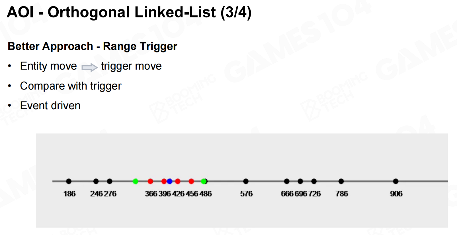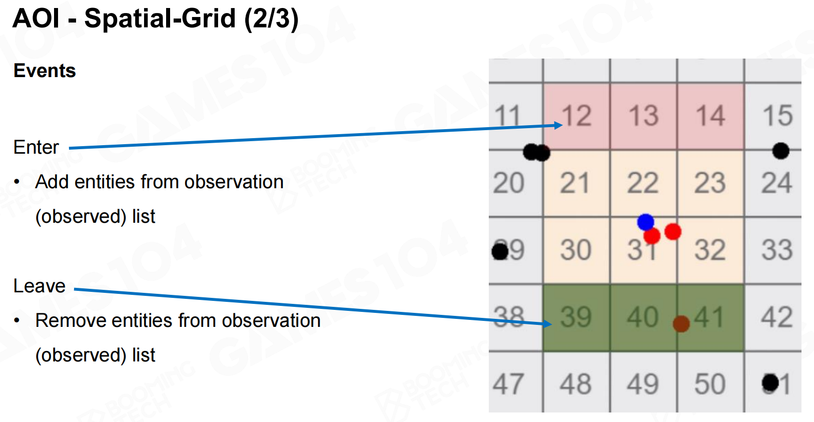 在一些开放世界游戏中我们不希望出现区域的划分,此时则可以利用area of inerest (AOI)的概念。AOI的意义在于我们只需要关注玩家附近的情况而无需考虑更远区域的信息。