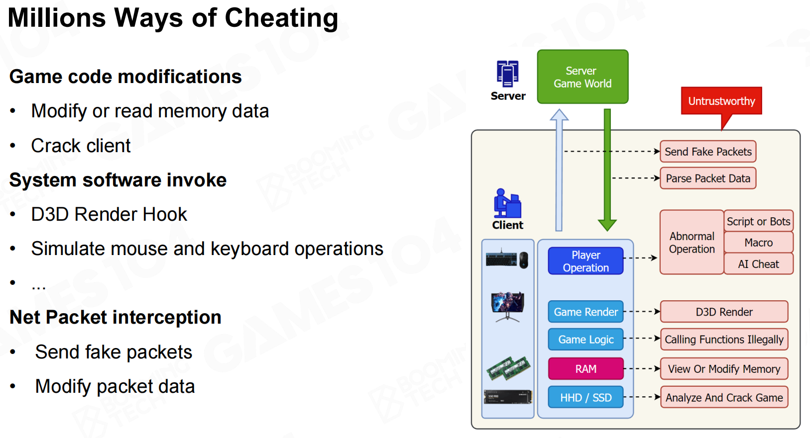 反作弊(anti-cheat)同样是现代网络游戏必须要实现的功能,作弊行为对游戏运营和其他玩家都会造成非常巨大的伤害。