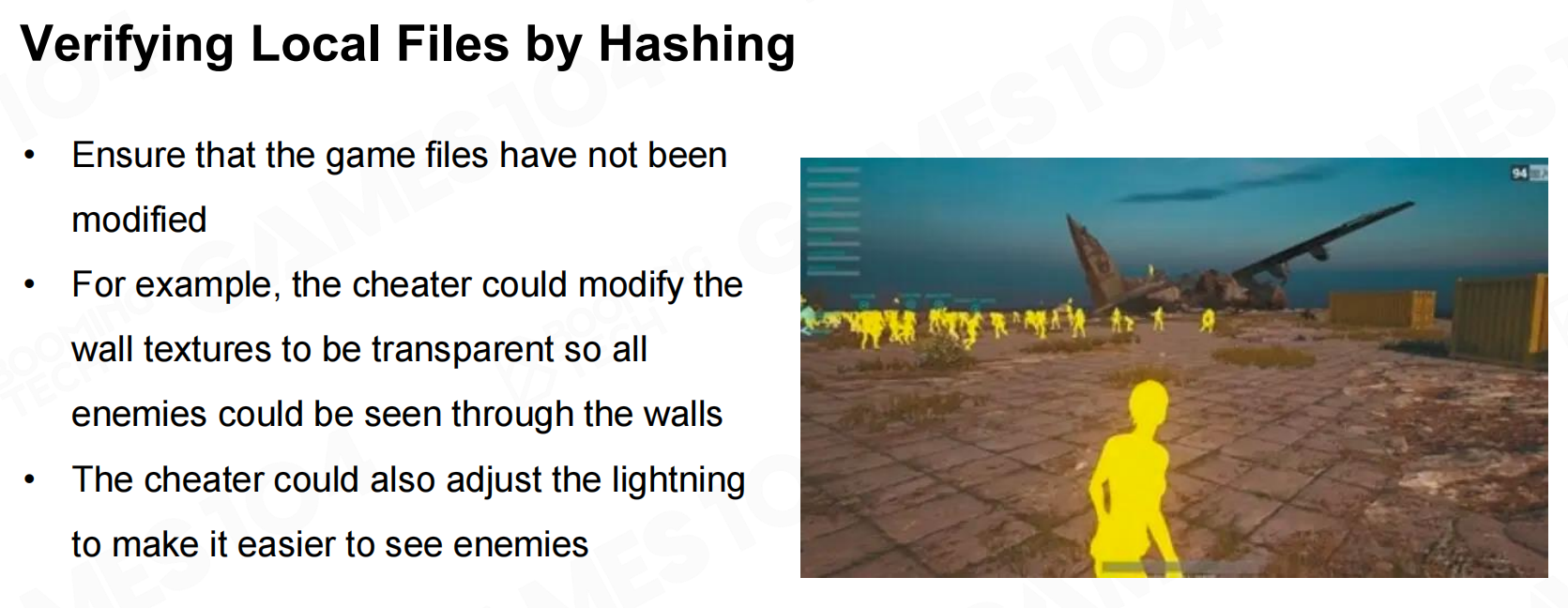 另一种常见的作弊方法是修改本地的资源文件。我们可以通过对比本地和服务器上资源的hashing来进行处理。