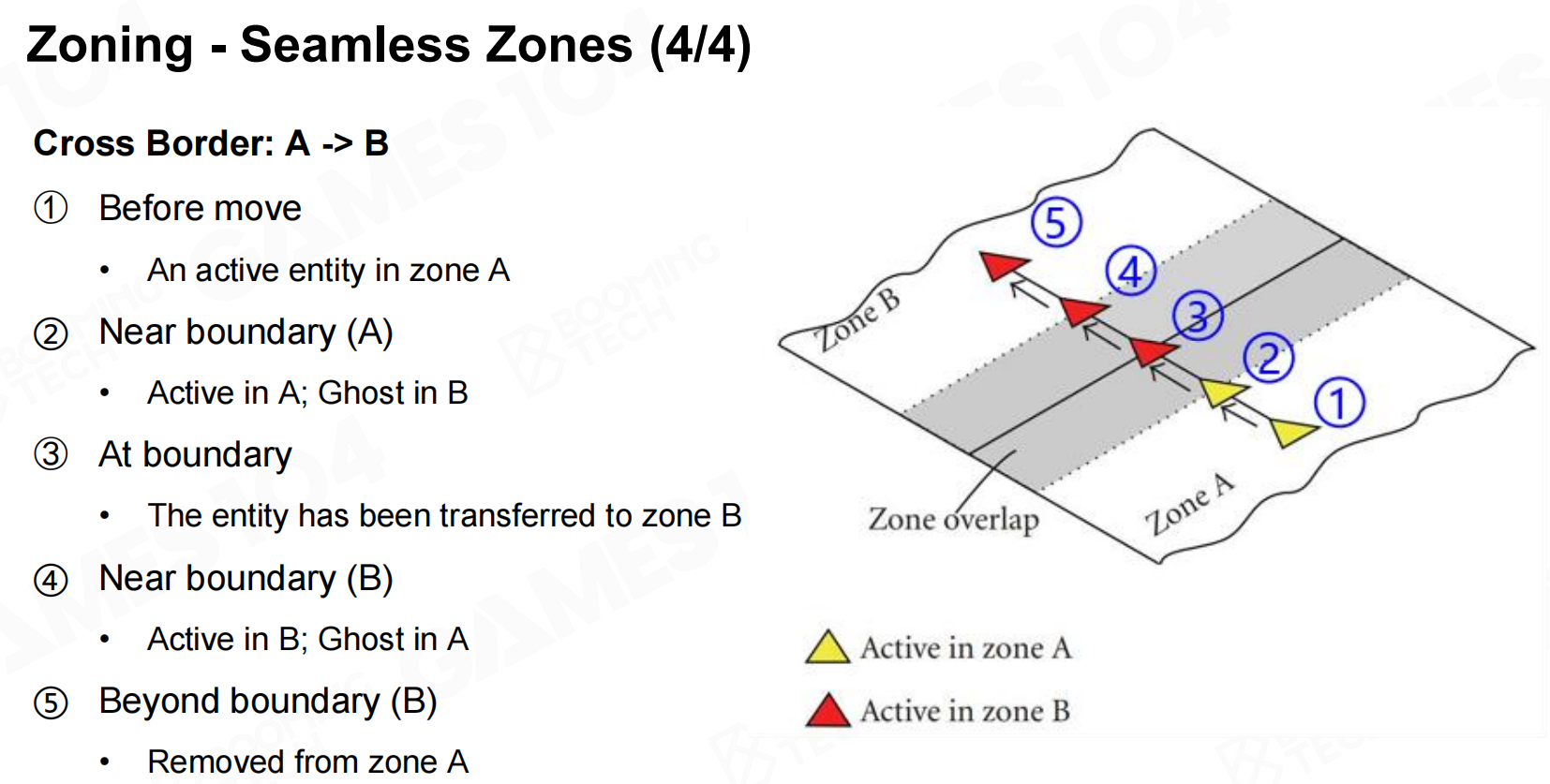 我们可以把整个游戏世界划分为若干个区域,这样每个玩家都会位于某个区域中。不同区域的数据是相互隔绝的,因此在同步时只需要同步区域中的数据即可。